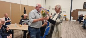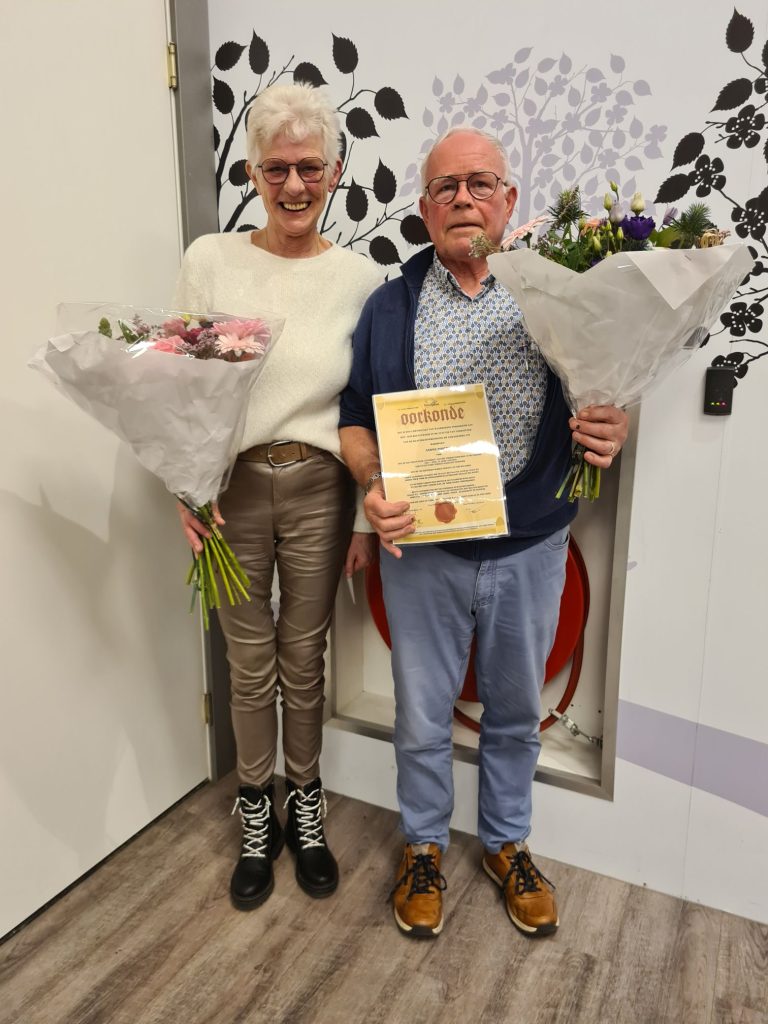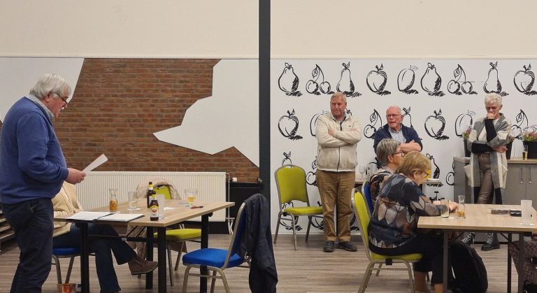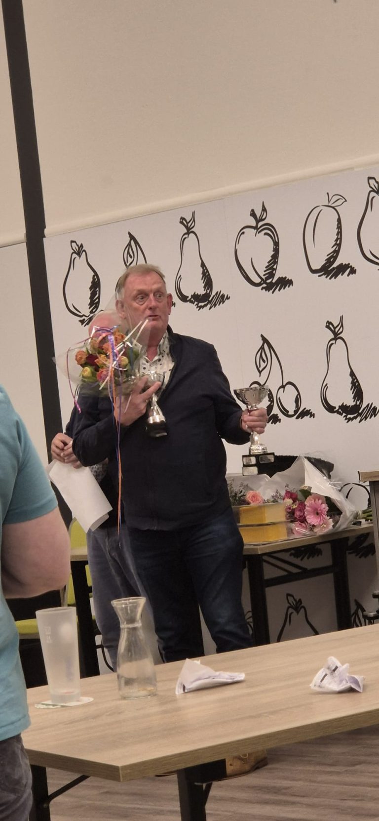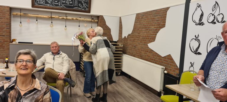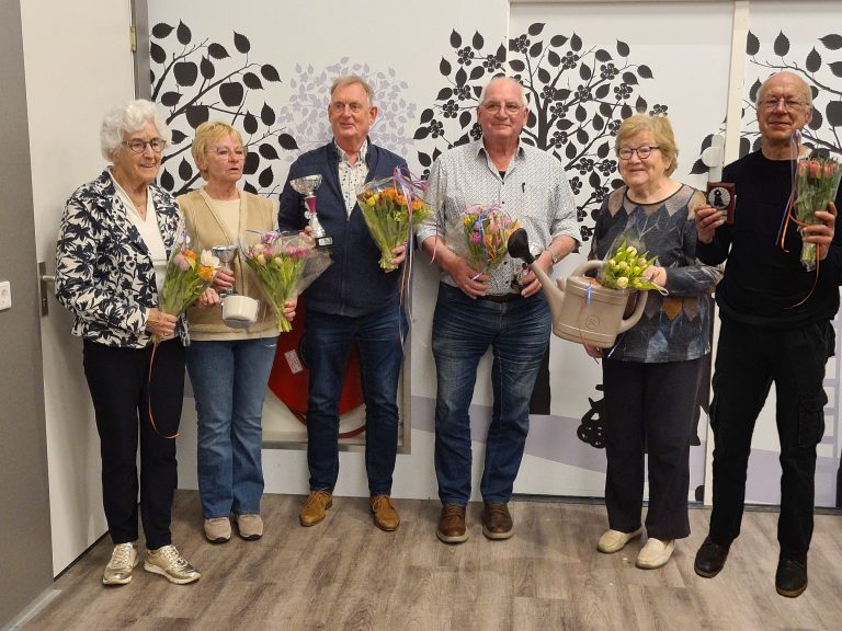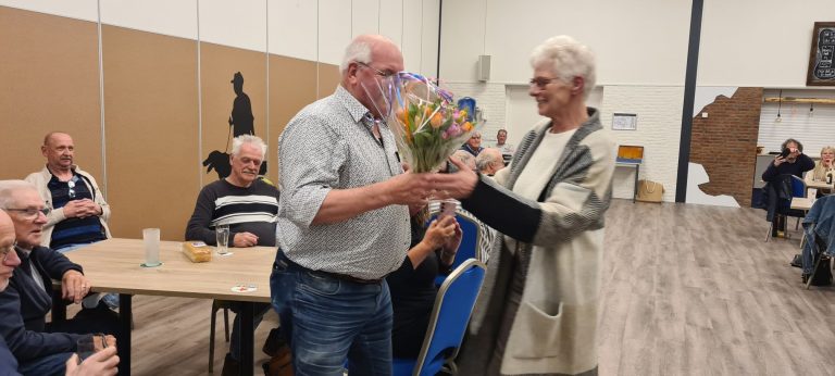Foto’s De oorkonde voor de voorzitter en de secretaris die afscheid nemen Frans is eerste in het klassement geworden Margaret heeft de 2de plaats Dirk is dit jaar derde Frans wint de poedelprijs Joke heeft dit seizoen de meeste pitten gehaald Wederom heeft Ria de meeste naten gehaald De winnaars van seizoen 2025-2026 Willem is de beste van de dag Ad heeft een toespraak